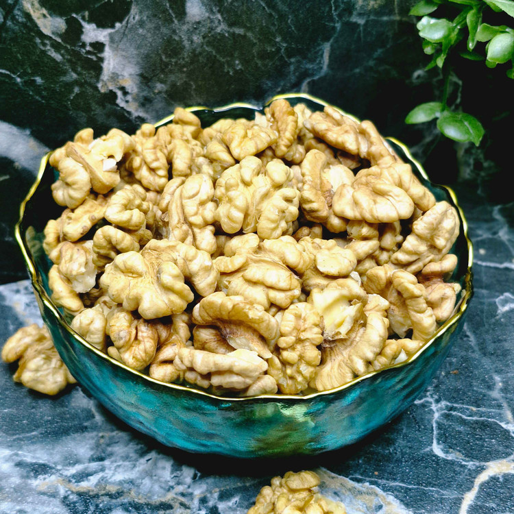 کاملا سالم، بدون خرد شدگی یا پوکی، رنگ سفید مایل به کرم (استاندارد جهانی گردوی لوکس)